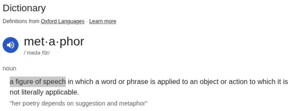 אנקדוטה מעניינת – אפילו בהגדרה למטאפורה באנגלית יש שימוש במטאפורה: