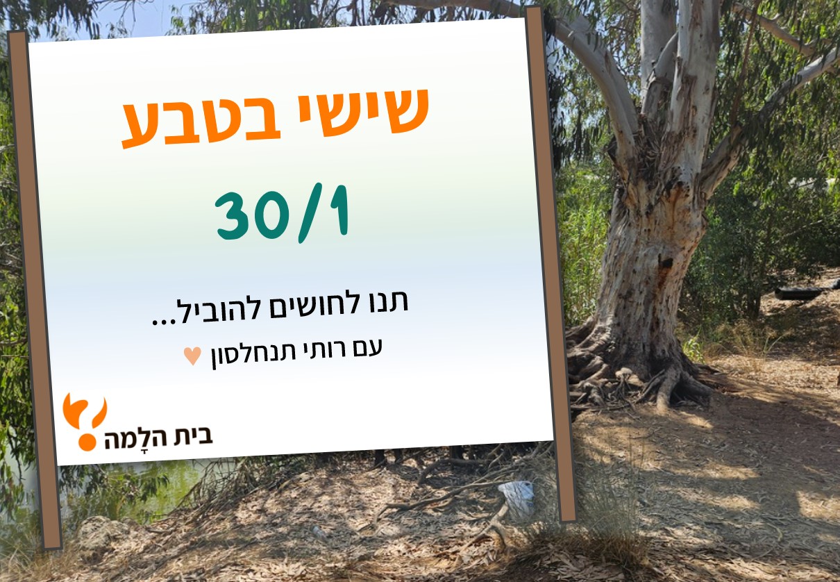 30/1/26 | שישי | 10:00 - 13:00 | שישי בטבע בשפך נחל שורק "תנו לחושים להוביל..." - עם רותי תנחלסון |